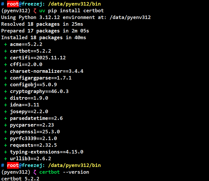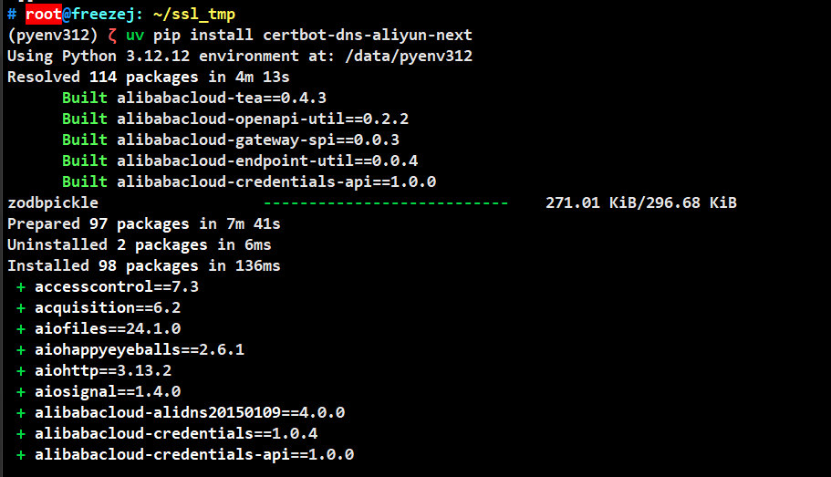 安装插件:uv pip3 install certbot-dns-aliyun-next